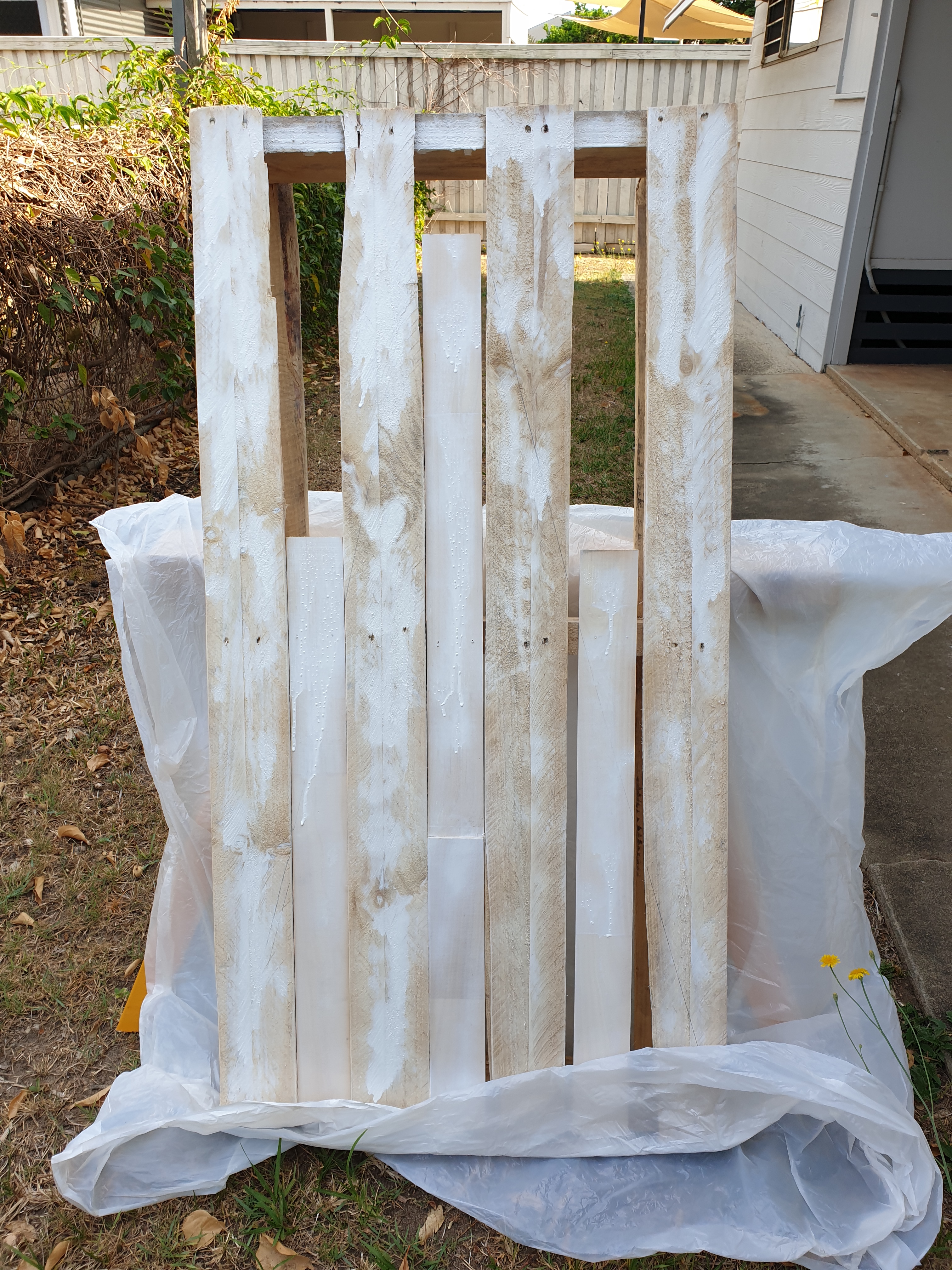 - I painted the whole pallet white first and let it dry as per the paint instructions. A nice wood varnish would also look great depending on what style you prefer.